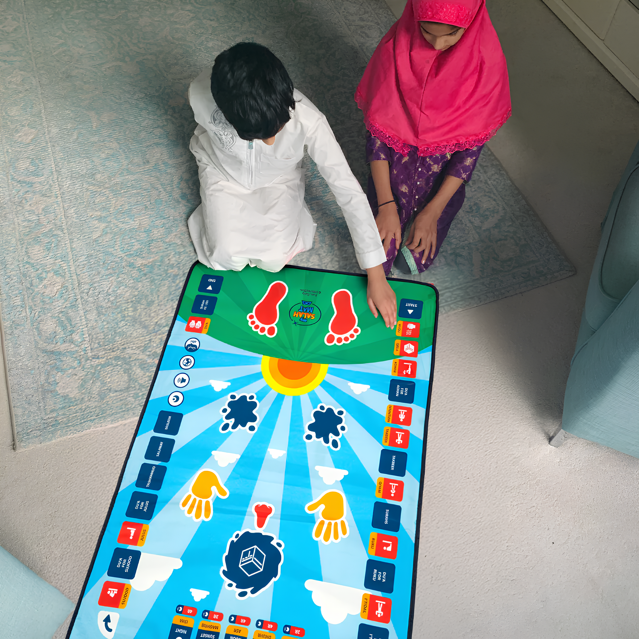 Akıllı Çocuk Seccade, interaktif sensör teknolojisiyle öğrenme sürecini birkaç güne indirir. Bu sesli namaz kıldırma sistemi, çocukların görsel ve işitsel hafızasını tetikler. Namaz öğreten seccade sayesinde rükünleri eğlenerek pekiştiren küçükler, otomatik seccade rehberliğinde bağımsız ibadet alışkanlığını kısa sürede ve doğru teknikle kazanarak özgüven geliştirirler.