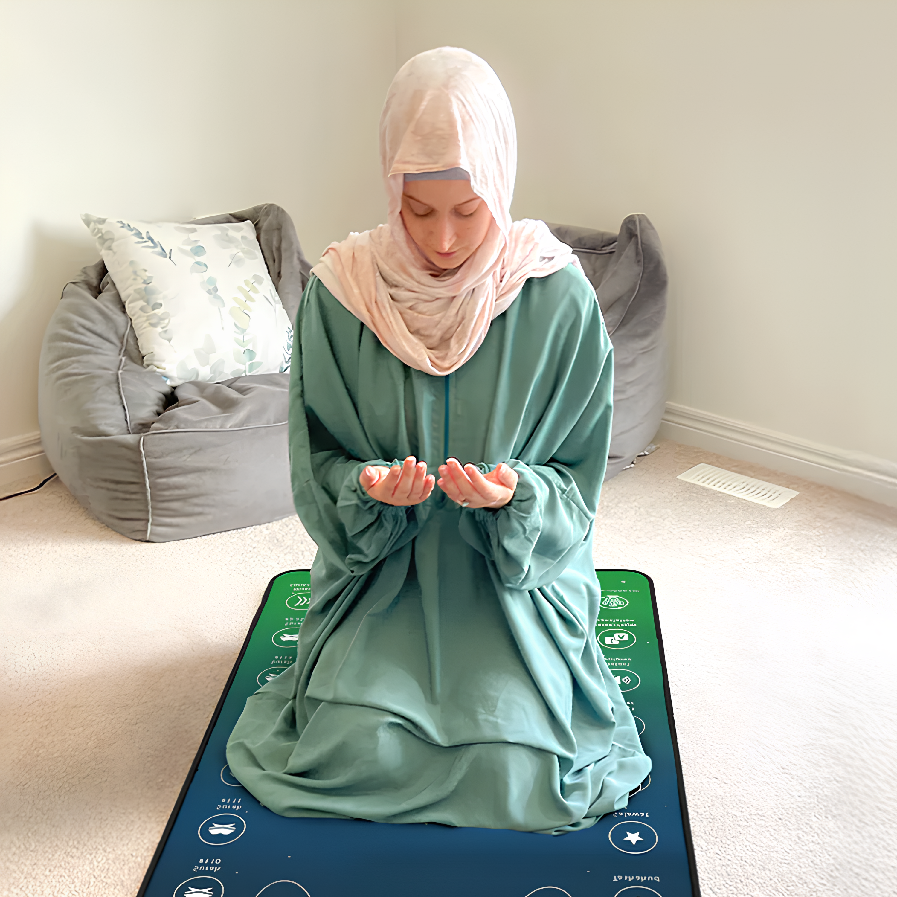 Akıllı Seccade, ışıklı ve sesli yönlendirme sistemleriyle ibadet rükünlerini hatasız kavramayı sağlayarak kolay öğrenim imkanı sunar. Dokunmatik sensörlü teknolojiye sahip sesli namaz kıldırma düzeneği, doğru pozisyonu algılayarak kıraat rehberliği yapar. Modern namaz kılan seccade, interaktif dijital paneliyle vakitleri ve duaları öğreterek dini eğitimi teknolojik bir konforla birleştirir.